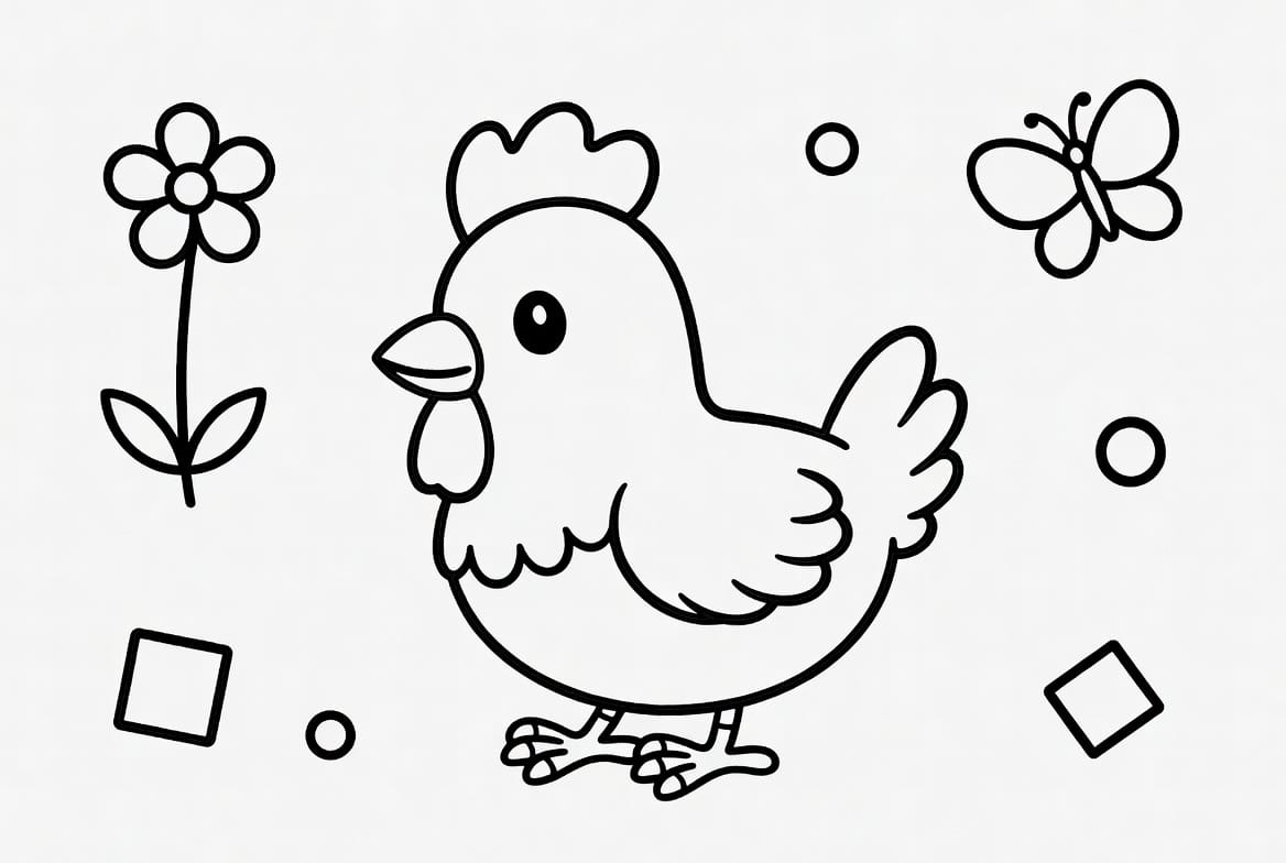Kanatlarını çırparak bahçede gezinen bu tatlı tavuk boyama kağıdını en canlı sarı ve kahverengi tonlarla süsleyin
