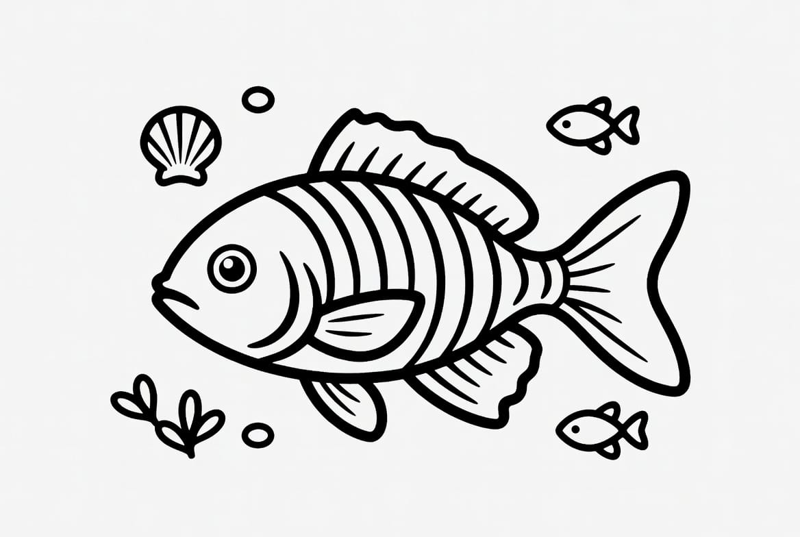 Okul öncesi ve ilkokul çağına uygun bu basit çizgili balık boyama resmi miniklerin el kaslarını güçlendirmek için idealdir