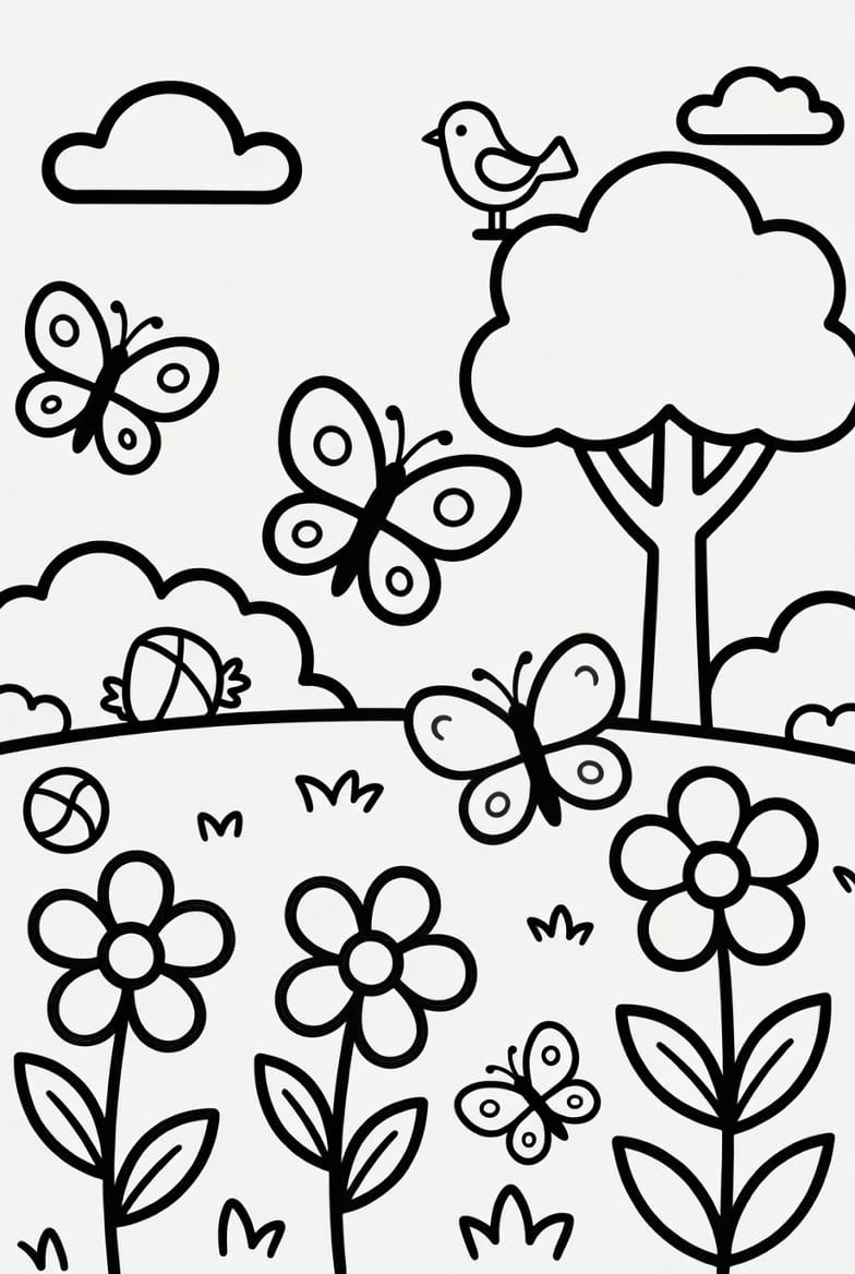 Okul öncesi etkinlikleri için hazırlanan bu basit mevsim boyama resmi çocukların gelişimini destekler