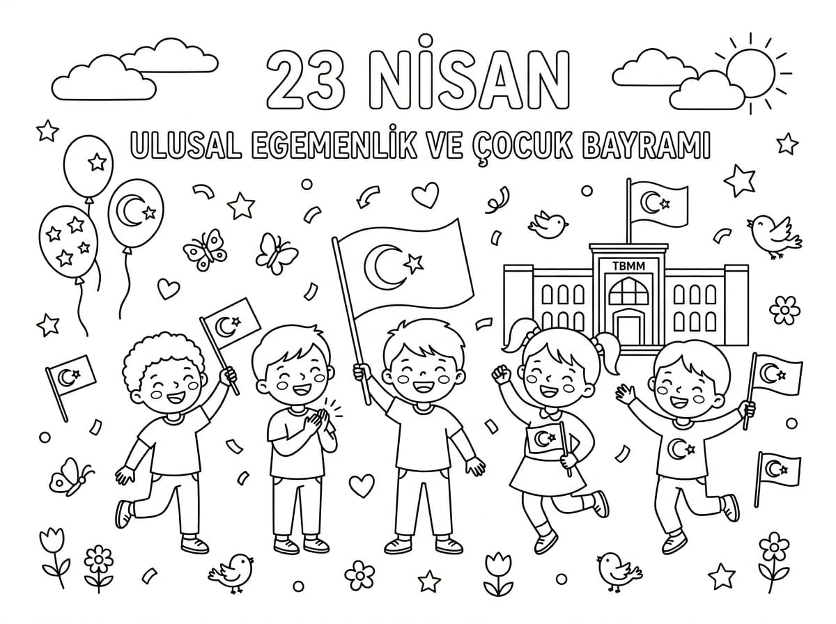 Küçük çocuklar için basitleştirilmiş formlar içeren kolay 23 Nisan boyama sayfası sitemizde. Bu şablon sayesinde çocuklar sınırları aşmadan boyama yapmanın keyfine varacaklar. Ücretsiz indirme linkine tıklayarak bu pratik materyali hemen edinebilirsiniz
