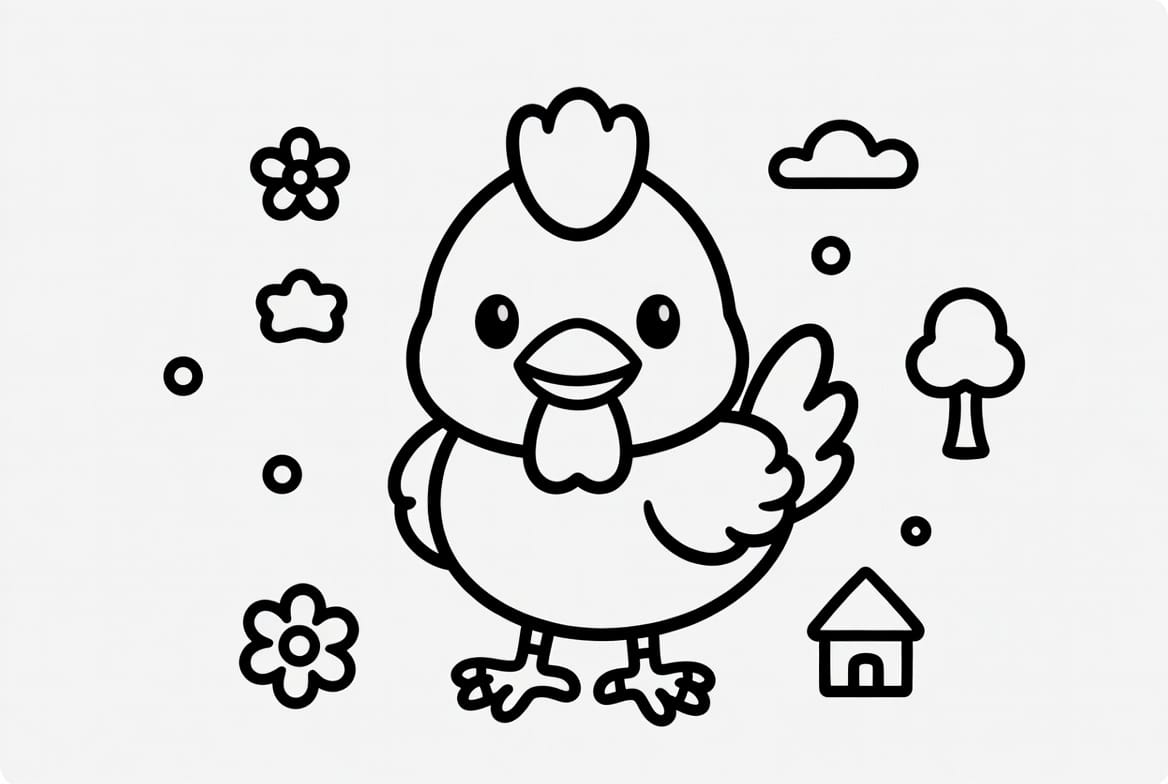 Okul öncesi çocukların el becerilerini geliştiren bu basit çizgili tavuk boyama resmi miniklerin el kaslarını güçlendirir