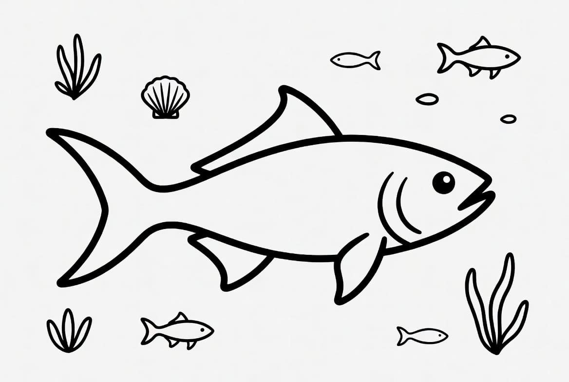 Boya kalemlerinizi alın ve bu sakin yüzen balık boyama şablonunu en sevdiğiniz tonlarla hemen canlandırın