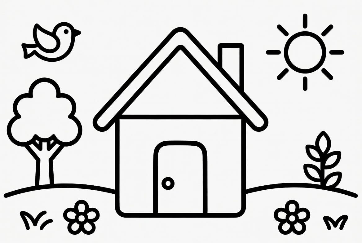 Çocukların mimari merakını ve yaratıcılığını geliştiren bu genel ev boyama şablonu her türlü yapı görseliyle uyumludur