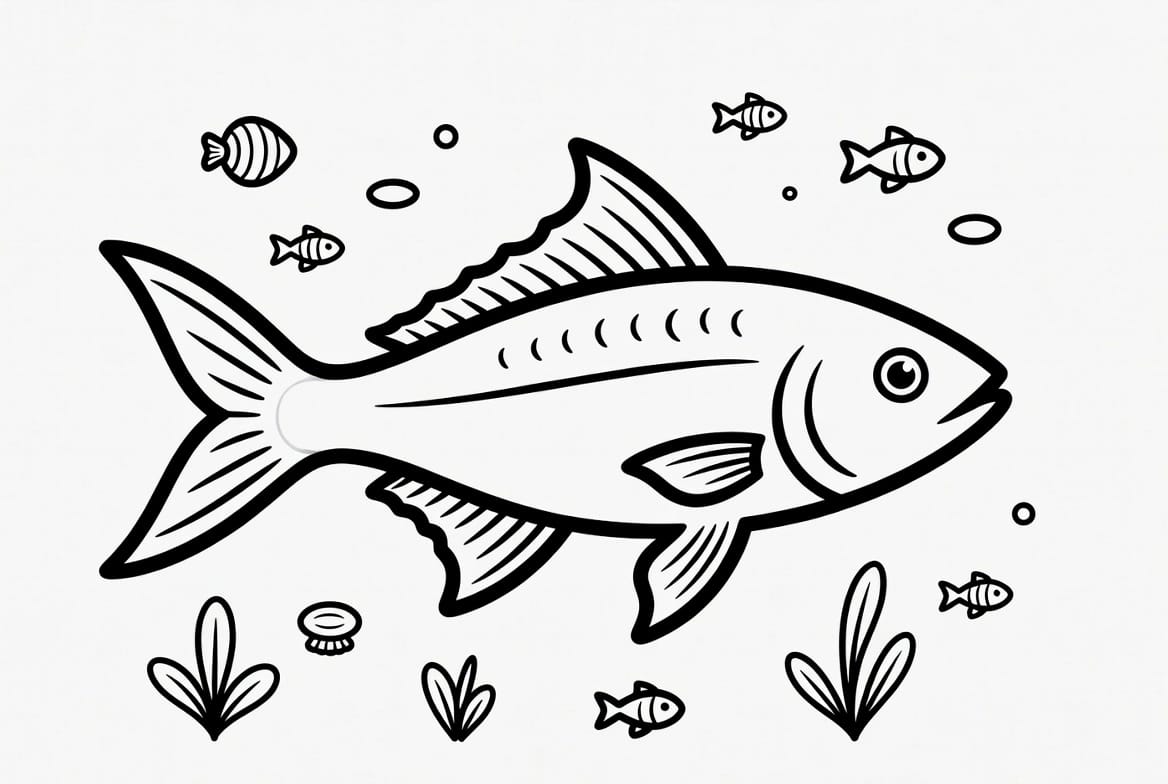 Okyanusun derinliklerinde yüzen bu renkli balık boyama sayfası ile su altı dünyasının tüm güzelliklerini kağıdınıza yansıtın