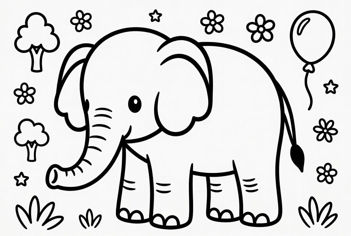 Dev hortumu ve büyük kulaklarıyla ormanların en sevilen hayvanlarından olan bu fil boyama sayfası ile doğanın renklerini keşfedin