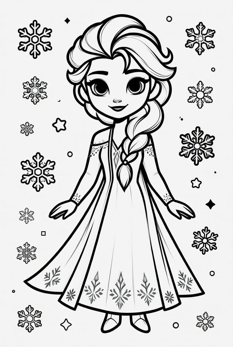 Sihirlerini kullanarak kar taneleri oluşturan bu tatlı Elsa boyama kağıdını en sevdiğiniz mavi ve gümüş tonlarla hemen süsleyin
