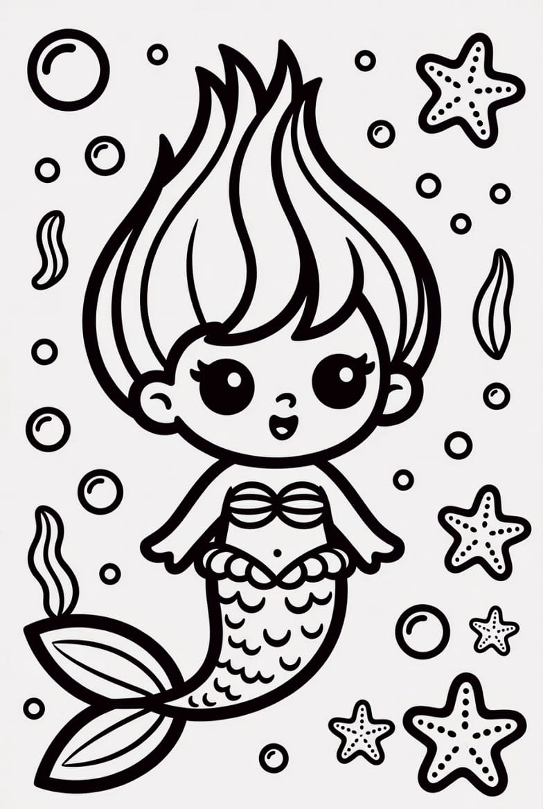 En sevilen fantastik figürleri içeren bu genel boyama sayfası ile masalsı bir okyanus hikayesinin parçası olun