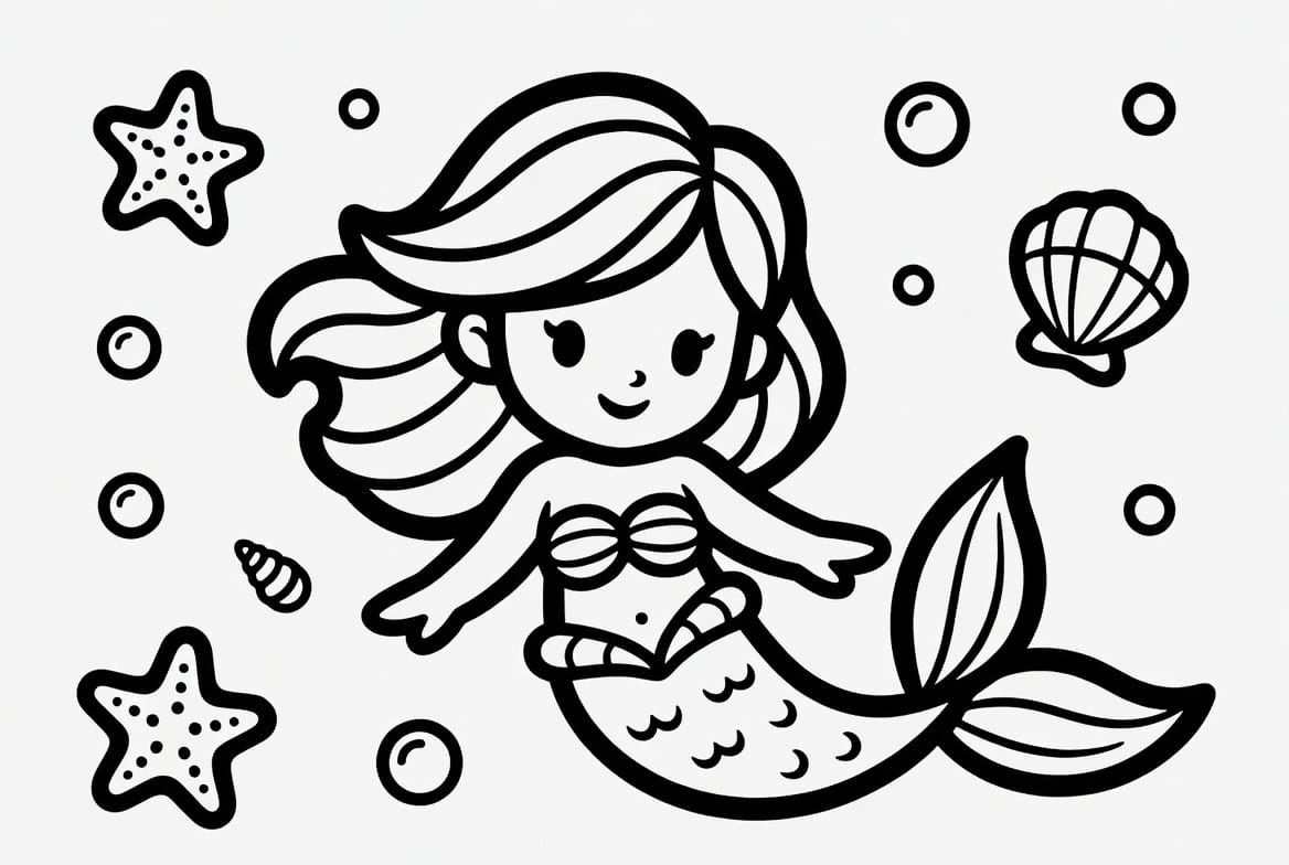 Gökkuşağı gibi parlayan kuyruğuyla dikkat çeken bu tatlı deniz kızı boyama kağıdını en sevdiğiniz renklerle hemen süsleyin